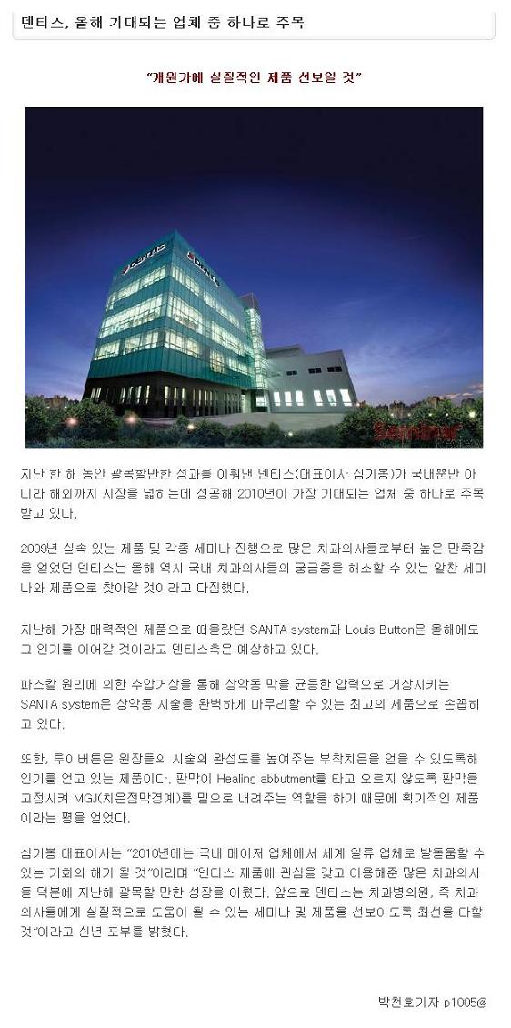 | 덴티스, 올해 기대되는 업체 중 하나로 주목 | ||