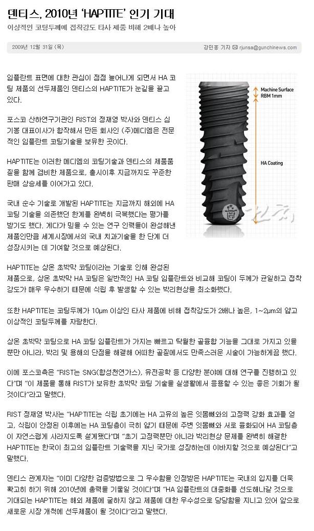 덴티스, 올해 기대되는 업체 중 하나로 주목 | 2009-12-31 |