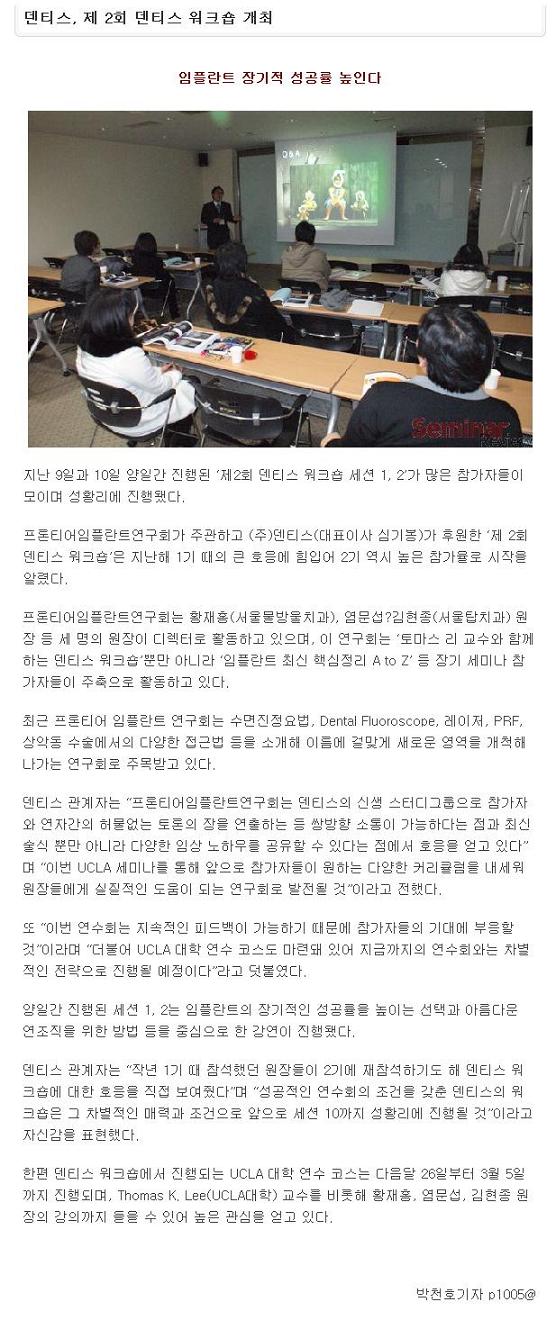 | 제2회 토마스리 교수와 함께하는 덴티스 워크숍 개최 | ||
