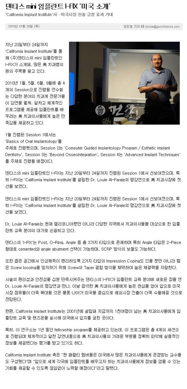 | 덴티스 mini 임플란트 I-FIX ‘미국 소개’ | ||