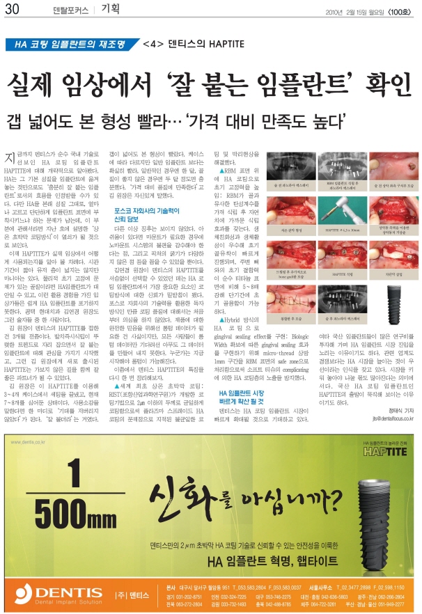 HA 코팅 임플란트, HAPTITE 기획(3) | 2010-02-09 |