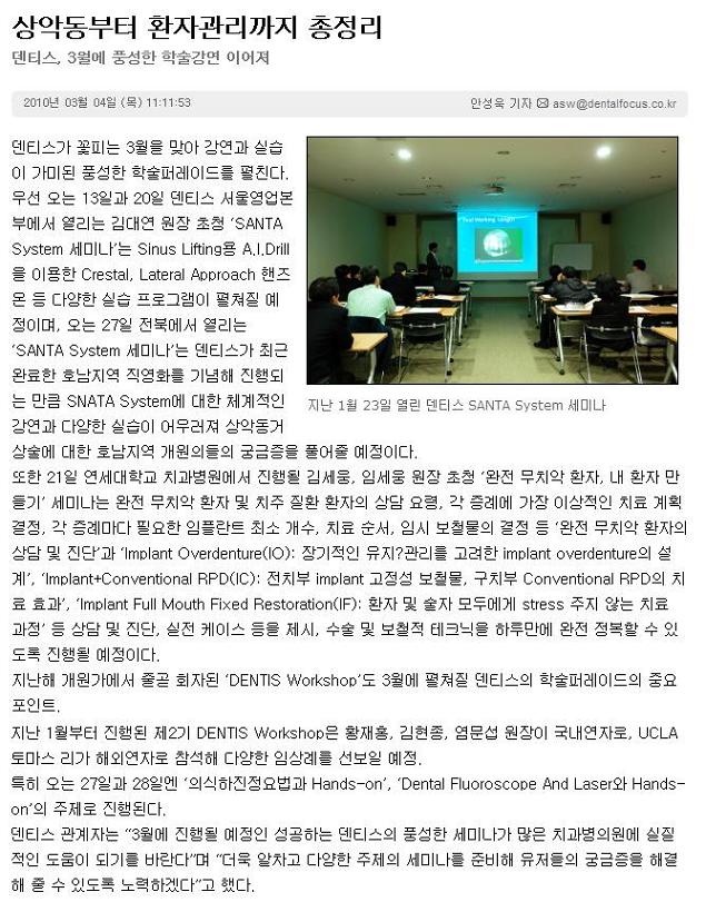 [추천세미나]UCLA 연계 'DENTIS Workshop' | 2010-03-04 |