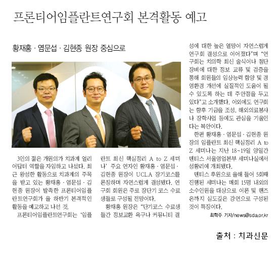 지난 18, 19일 '임플란트 최신 핵심정리 A to Z' 와 '프론티어임플란트 연구회' 관련 치과신문 기사입니다. - 타 신문사 기사 읽기 ▶ '덴탈포커스' 기사 읽기 ▶ '치의신보' 기사 읽기 |