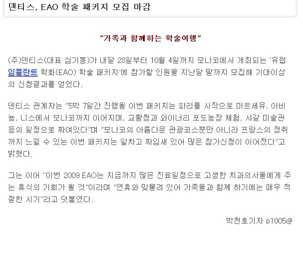 | 덴티스, EAO학술 패키지 모집 마감 | ||